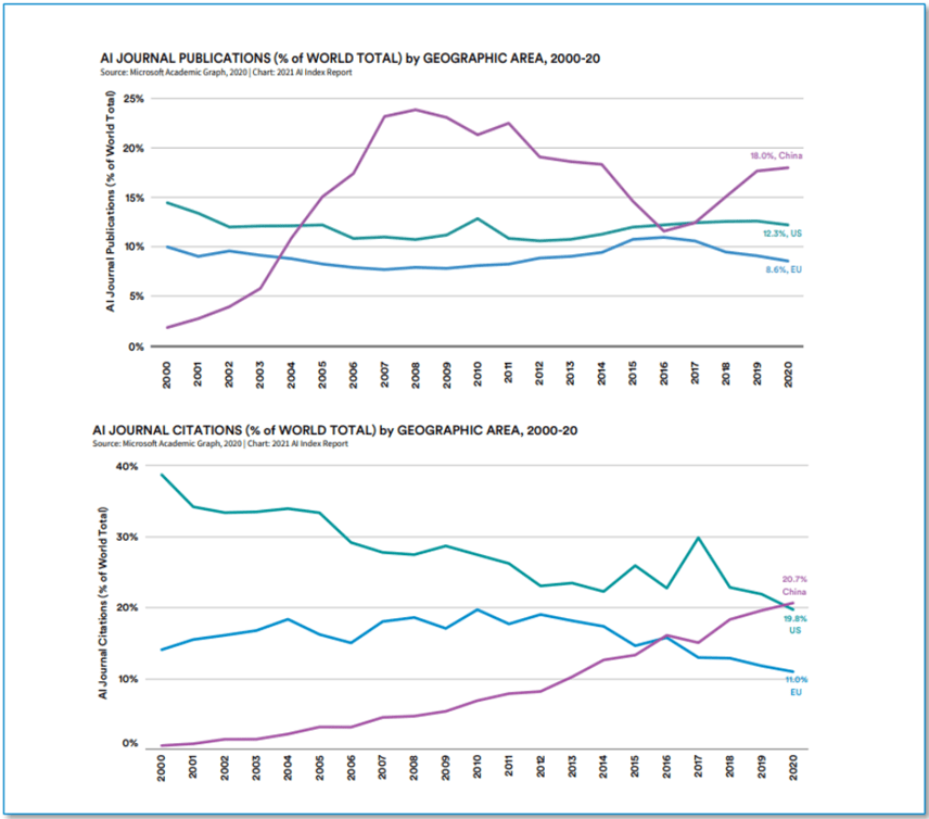 目前我国已构成了较成熟的人工智能生态。此中海潮以16.4%的市场拥有率成为全球人工智能根本设备的龙头玩家。中国的人工智能论文颁发量和被援用量均居全球首位。